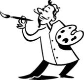 Art palette clipart black and white: An artist with his paintbrush