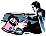 Foreboding clipart: An illustration of a man looking down at a sleeping woman Clip Art