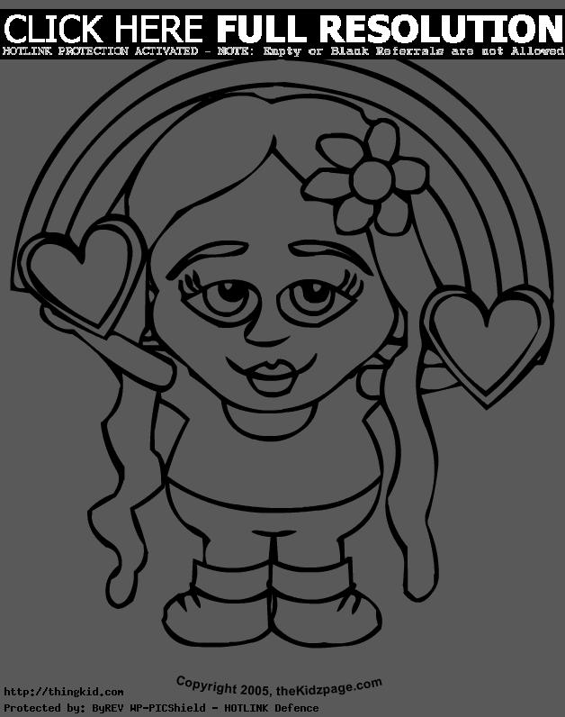 Rainbow coloring page with color words: and hearts coloring pages