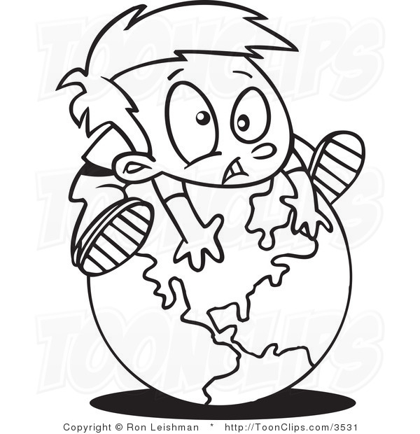 Globe drawing: and White Line Drawing of