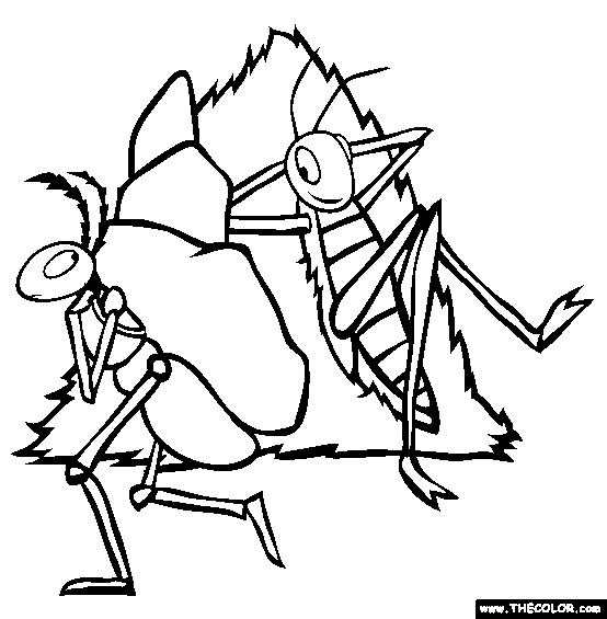 Grasshopper drawing: Ant And Grasshopper Coloring