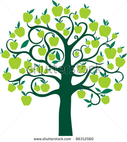 Green apple tree clipart: apple tree with green apples