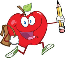 School apple clip art: Apple With School Bag And