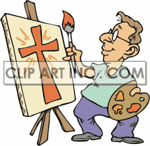 Artist painting clipart: artist painting a cross