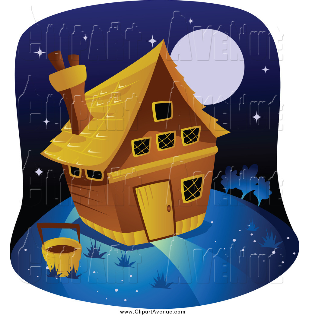 Night clipart: Avenue Clipart of a Farm House