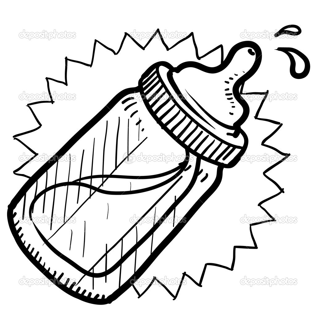 Milk bottle vector: Baby bottle sketch - Stock