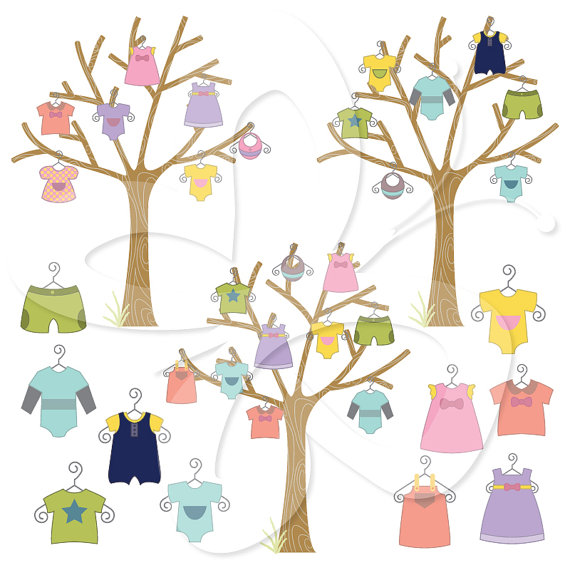 Clothes clipart: Baby Clothes Trees Digital