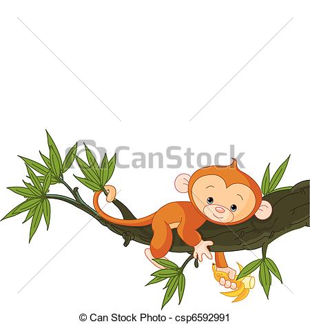 Spider Monkey Clipart: Baby monkey on a tree -