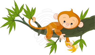 Baby monkey clip art: Baby monkey on a tree clipart