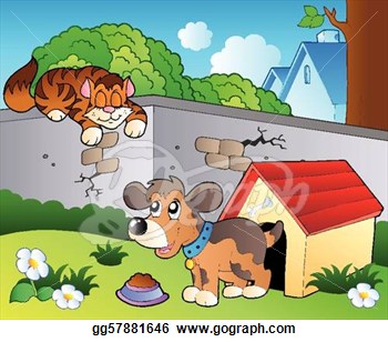 Backyard clipart: Backyard with cartoon cat