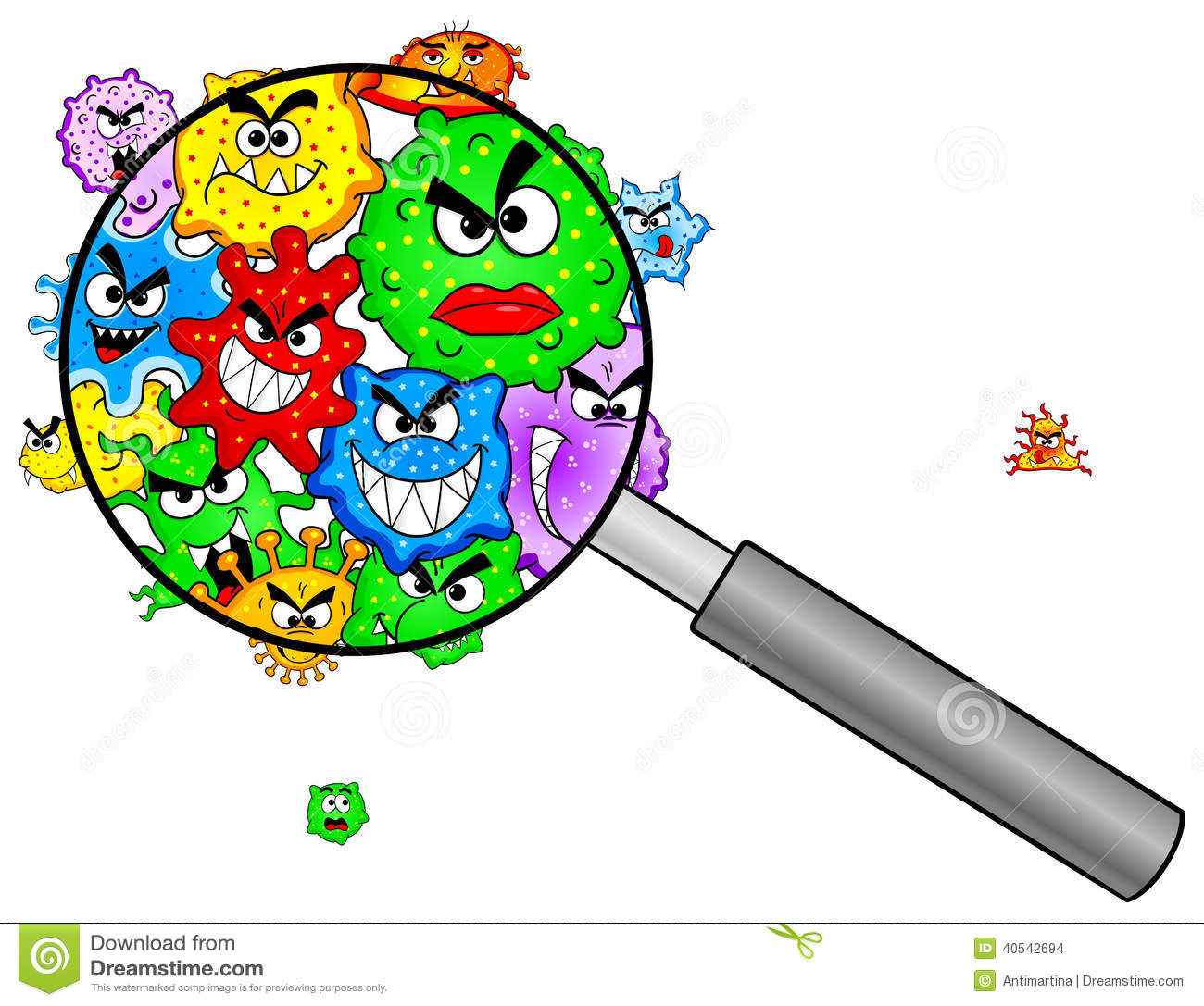 Bacteria clipart: Bacteria under a magnifying