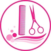 Pink hair scissors and comb: barber scissors : sign with