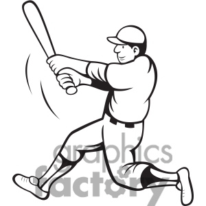 Swing clipart black and white: baseball batter swinging black