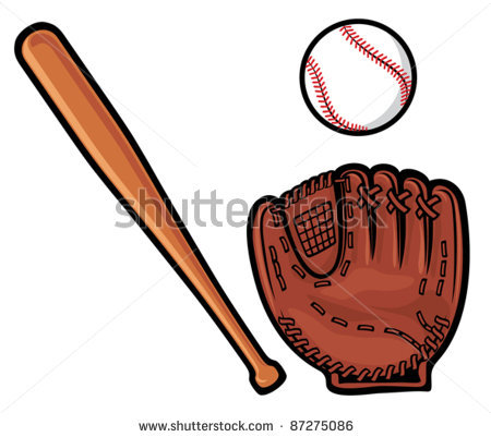 Baseball ball vector: baseball glove, ball and bat
