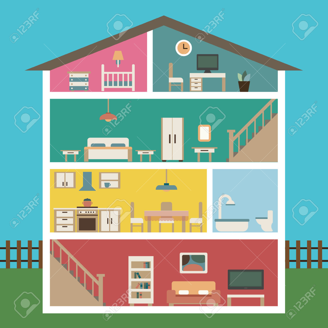 Basement clipart: basement: House in cut.