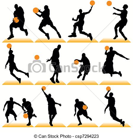 Basketball hoop side view clipart: Basketball Players Silhouettes