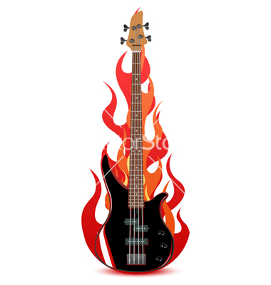 Bass guitar art: Bass guitar in flames vector
