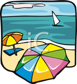 Beach water clipart: Beach Umbrellas and a Sailboat