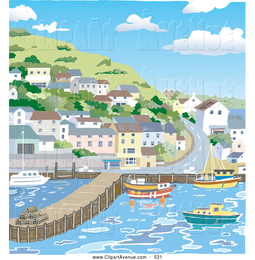 Town clipart: Beautiful Coastal Town with