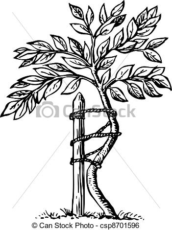Stake clipart: Bent tree roped to a stake on