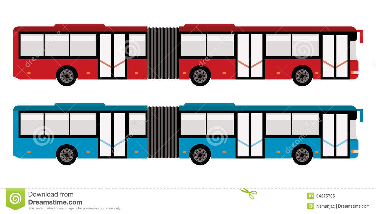 City bus clipart: Big city bus in red and blue