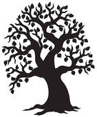 Oak tree silhouette logo: Big leafy tree silhouette