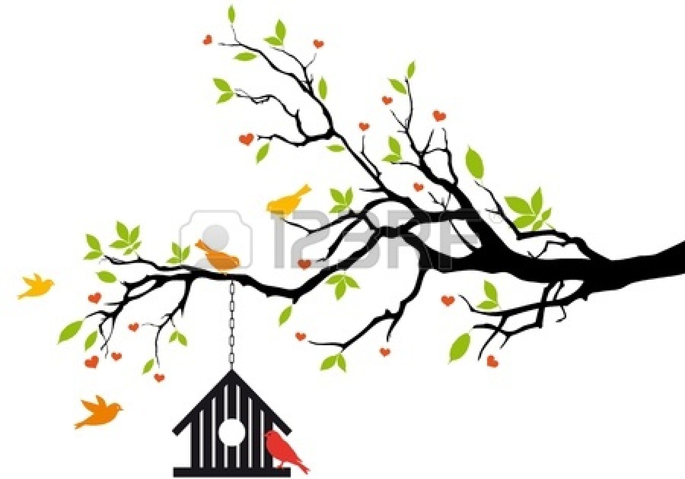 Extended family tree: bird house on spring tree with