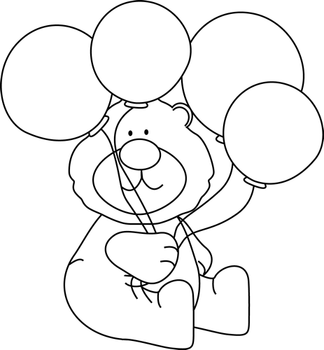 Happy birthday balloon clipart black and white: Black and White Bear with