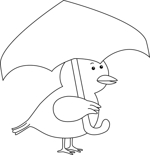Umbrella clipart black and white: Black and White Bird Holding