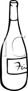 Water bottle clipart black and white: Black and White Bottle of Wine