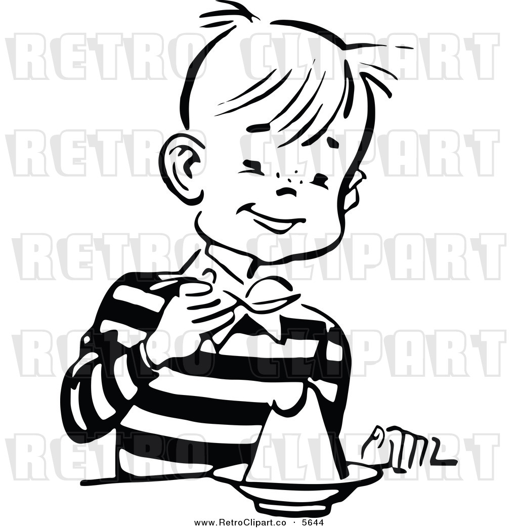 Kid eating clipart black and white: Black and White Boy Eating