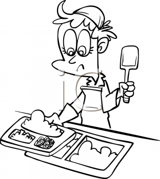School children clipart black and white: Black and White Cartoon of a