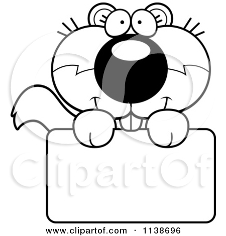 Cute squirrel coloring page: Black And White Cute Happy
