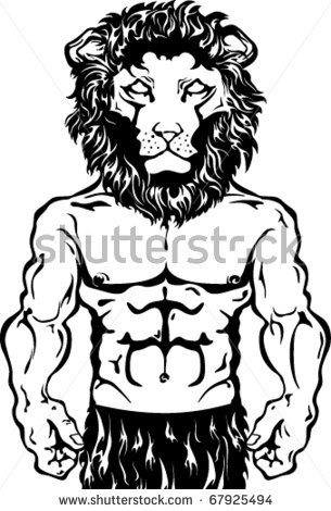 Lion head clipart black and white: Black and White Male Torso