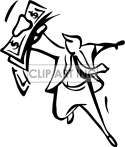 Money bills clipart black and white: black and white man holding
