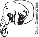 Elephant head clipart black and white: Black And White Outline Of A