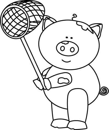 Pig clipart black and white: Black and White Pig with a Net