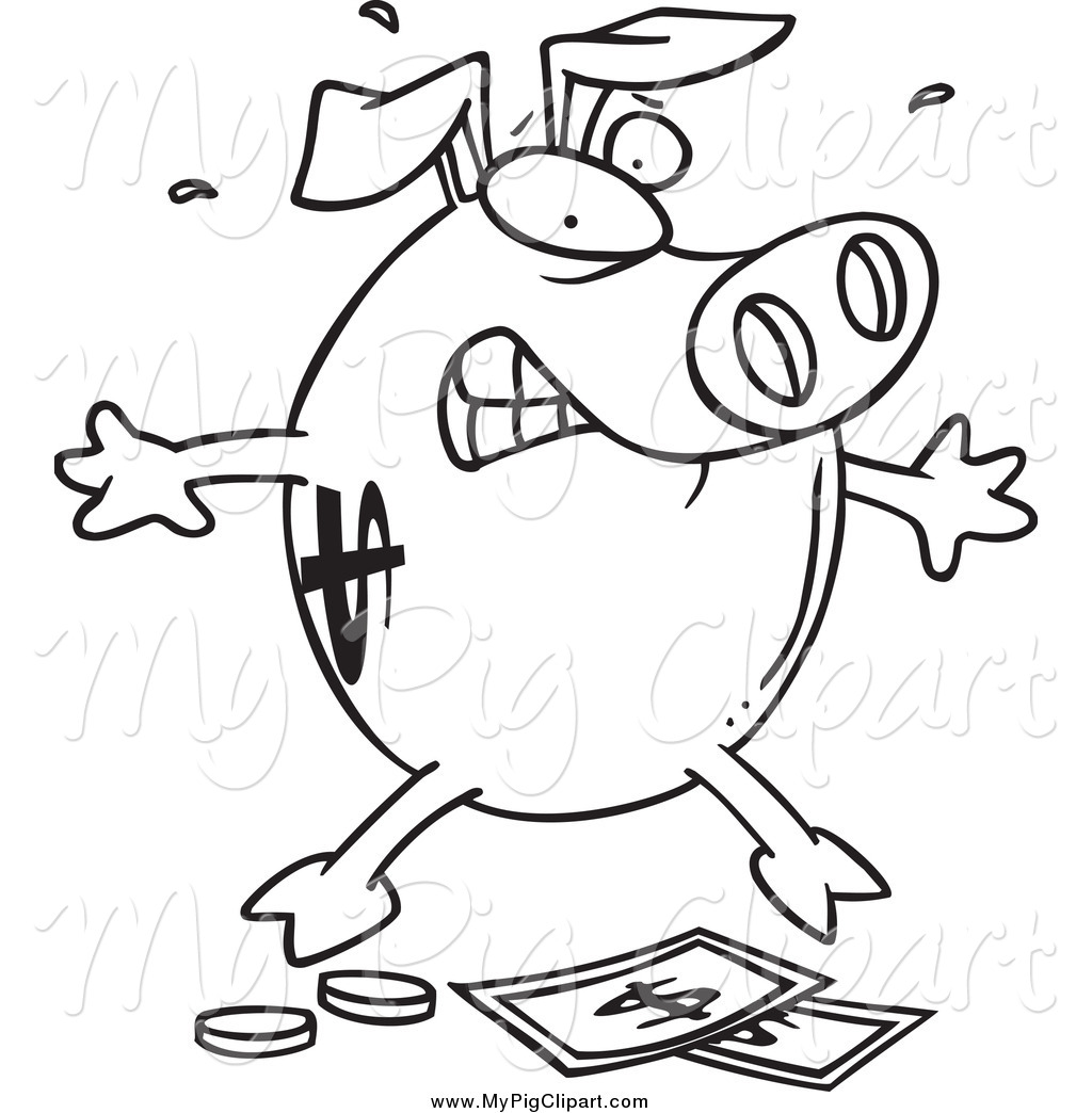 Piggy bank clipart black and white: Black and White Piggy Bank