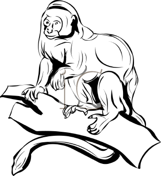 Primate clipart: Black and White Primate in a