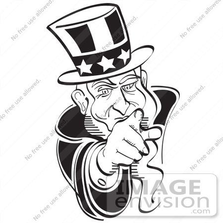 4th of july clipart black and white: Black And White Uncle Sam