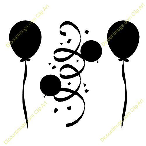 Confetti clipart black and white: black balloons with confetti.