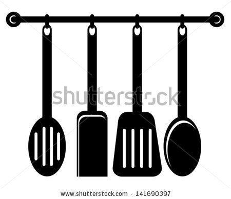 Hanging cooking utensils clipart: Black kitchen utensils