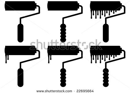 Paint roller vector: black paint roller icon set