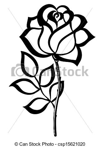 Rose clip art outline: black silhouette outline rose,