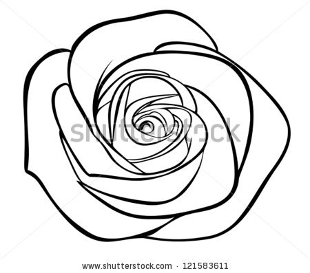 Rose black and white outline: black silhouette outline rose,