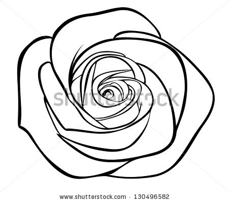 Rose black and white outline: black silhouette outline rose,