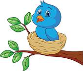 Empty bird nest clipart: Blue bird cartoon in the nest
