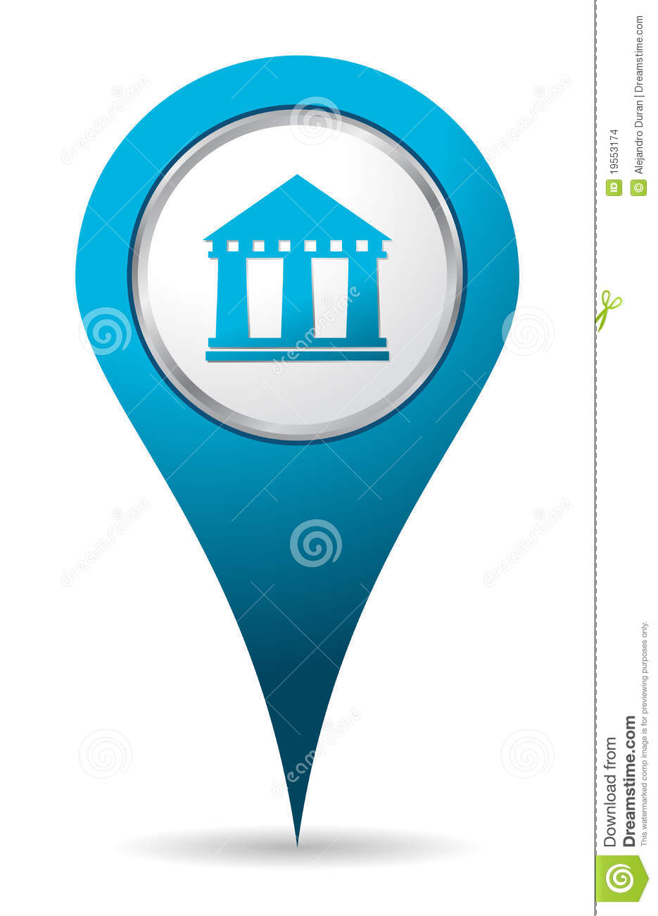 Blue location icon: Blue location bank icon 3d