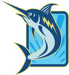 Marlin clipart: Blue Marlin Jumping Retro -