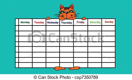 Timetable clipart: Blue timetable with cat wedged